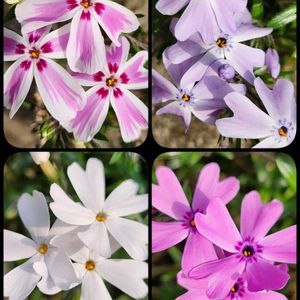 今日のお花 シバザクラ 明日投稿しようと思っていたら 今日のお花だと気が付いて慌てて投稿します 見切り品のシバザクラを少しずつ集めてきたけど 4色そろって咲き始めました