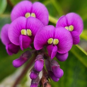 ハーデンベルギア どうしても笑ってしまうこのお顔😆 紫と白の2色植えのハーデンベルギアが やっと咲いてきました