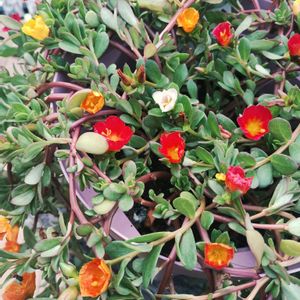ポーチュラカ✨ 残暑の頃に花無し見切り価格で買った多色植えポーチュラカ… 涼しくなって咲き始め、まだ咲き続けているので処分できません😅 今年はこういう人、多いんじゃないかな😆
