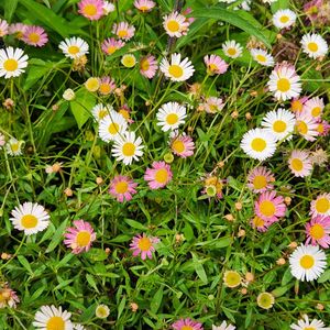 園芸センターで見かけたお花です。 何のお花でしょう? とても優しい色のお花達🌼🌼🌼 マーガレットでしょうか?🫠💕🍀 投稿後に皆様から名前を教えて頂きました『エリゲロン』だそうです✨️ 有り難うございました😊👍✨️🎉