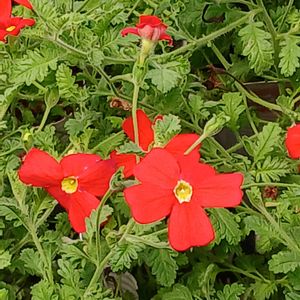 『サンブリテニア』 蛍光レッドのような 鮮やかな赤い小花が緑の葉の間に沢山咲いて…可愛いやら💕…元気出るやら…💪😊✨️ よ~し 私も負けてられないぞ💪😊🎉🎉🎉 【花言葉】 純愛 小さな強さ 秘められた情熱