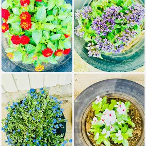 おはようございます😃 🏷️今日のお花 コルジリネ ①コルジリネ お店にサンセベリアとアイビーとで寄せ植えしてありました☺️ ②じゃがいも🥔の花 ③ミニトマト🍅花と実 ④カボチャ🎃の花 ⑤ナス🍆の花と実 ②③④⑤ 私の庭の畑で育ててる野菜たち です🥔🍅🎃🍆