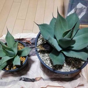 こんばんは🌙😃❗ ご無沙汰しております😅💦 仕事が忙しかったり、他もろもろで投稿サボってました🤣 引退したわけじゃないですよ😁 仕事も一山越えたのと、それより何より、とっても嬉しい事が有ったので、久しぶりに投稿しまふ😍 ここからが本題です❗😁 はい、本日のアガペー❗🌵 🌵パリー🌵です❗ しかも2つ😊 この立派なパリー🕺💃なんと頂いちゃいました‼️😋 GSのフォロワーで、最近交流のあるCHIiさんからの、素敵便ならぬ。。。なんて言うんだろ❓🤔 GSの知人とリアルにお会いしたのは今回が初めてだったので、かなり緊張しましたが、CHIi さんご夫妻はとっても優しくて素敵な方々で、楽しいひとときを過ごさせて頂きました💖 地植えパリーの子株とのことですが、これ、めちゃくちゃ大きいです❗😁 うちのアガペーの中で一番大きいstyle_of_chikaさんから購入したチタノタに匹敵するサイズ😖✨ 冬でも地植えでいけるとのことなので、近いうちに地植えにトライしてみようと思ってます😁 それにしても、今年はGS繋がりで、色んな方からアガベやハオを頂いた年でした✨ いつか僕も誰かにお分けできる側になりたいなと密かに思う今日この頃なのでした😁