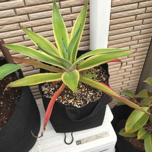 アガベ アングスティフォリア マルギナータ なっがい名前‼️ 和名だと、『白閃光』あら✨良い感じのお名前じゃん🎵 しかし、あまり大きくならないで欲しいのよね😥 屋根付き棚に入らなくなっちゃってたよ😓