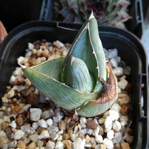 購入したときから外っかわの枯れだけちょっぴり気になるアガベさん かーなりゆっくり成長する子なご様子? おっきくなったらぶりんっパリッもりゅん!!!な感じに育ってくれそうやね! 奥にセンペルさんがチラリ