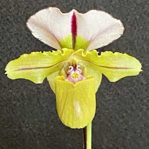 Paph. spicerianum 原種の地生ラン 小型種で、そり返ったドーサルの形が可愛い花です。