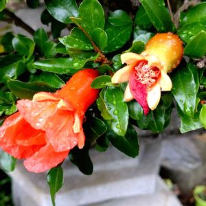 おはようございます その向こう側に 雨が待っていても 鮮やかなあなたは変わらない 🌼 ざくろの花✨🧡🍀