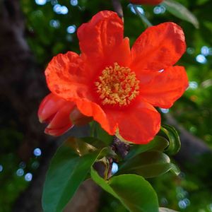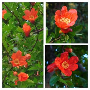 ザクロ ミソハギ科 ザクロ属 10 年振りに 咲いたザクロ 昨年 隣のミカンの木 を伐採後 今年初めて 沢山の花が開花 癒やされています🤩