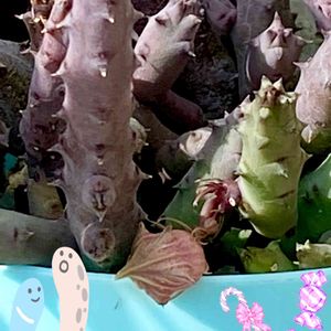 ハナキリンなら、雪降っても外で大丈夫だろぅ😆 まだ日中は☀️出るからか⁉️(キャノピーで日陰になるが)ちっさな赤いツボミ付けてるョ❣️ 健気だ( ु ›ω‹ ) ु♡