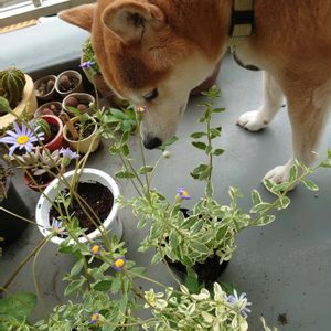 こんばんは😊 🏷️ワンワン祭りに参加します🐶🐶😊💕 1️⃣ブルーデージー💜お迎えしました💜久々のてんくんチェック🐶 2️⃣ブルーデージー斑入りの葉💙スーパーのお花コーナーで見つけました💙💜 3️⃣モスキートゼラニウムと🌿寄せ植えしてみました🪴💚😊 4️⃣紫陽花のお散歩道で縦列駐車💙🐕🦺🐕 5️⃣紫陽花とるるちゃん💙🐶もっと紫陽花に接近して欲しいのに😅動きません🐾😆💦