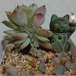 毎日被害多肉ちゃんばかりだと暗くなるから💦 そろそろ萌え萌え キューーーー(〃⊃ω⊂〃)ーーーン! の多肉ちゃんを💓 子沢山なデレンベルギー サマ😻😻😻 夕方室内で撮ったから、葉先のピンクの色が暗く見えるケド、15個のベビたん👶🏼💓 それとしわしわな葉刺しも💓 調子崩してチョンパした先っぽも手前にいるのよ🙀 やっと強烈大寒波は終わったみたいだけど、お水やりと外に出すタイミングが迷っちゃうなぁ💦 大昔、京都で買ったお気に入りの青銅招き猫お香立てと一緒に💓