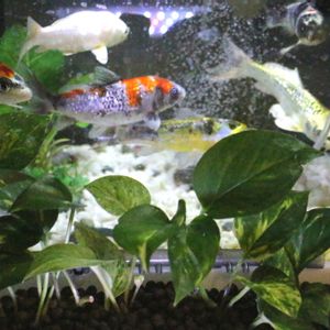 鯉の水槽のウォータープラントのポトスが伸び放題😋💦 両側から水槽の水をポンプで循環させてるのだけど、何故か離れた中央の方だけ伸びてる😉🌱 先月お迎えした銀鱗葡萄衣🐟️🐠✨ 頭部の色が少し残念だけど、まずまずの美人さん👍️🐠💕