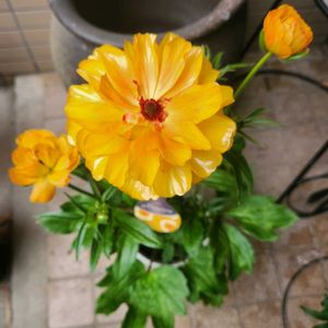 2025.02.13.Thu.☀️🌪️ あしかがフラワーパークからお迎えしたお花④❤️ これが最後です❣️ ラナンキュラスラックス ミネルバ😊 植え替えて1ヶ月でかわいいお花が咲いてくれました🥰 ビタミンカラーが元気をくれます♪