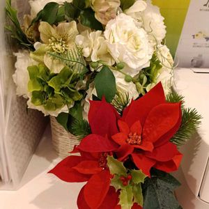いよいよクリスマス🎄 週間🧑🎄 色づいたポインセチアを✂️アレンジして職場に持って行きました。