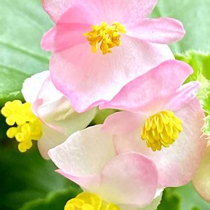 こんにちは〜😊 今日の天気は晴れのち曇り☀️☁️ 最高気温25度 最低気温18度 我が家の小さな花壇より🌸🌼🌺 🍃🌸ベゴニア🌸🍃 本日、2投稿目になります🙇 今年も溢れ種のベゴニア🌸が庭の あちらこちらから🌱芽を出して来ました💕🌱🌸🌱🌸🌱 ①②③こぼれ種育ち2年目のベゴニアは次々に花を咲かせています🌸 薄ピンク色の花びらが透き通るように綺麗です✨中心の黄色い蕊も可愛いですね💕🌸💛🌸 ④そして…ツツジ下のこぼれ種の ベゴニアは🌸これまでと同じく薄ピンク色🩷の花が咲いています💕🌿🌸🌸🌿 ⑤門扉前花壇のおチビさん苗は赤オレンジ系❤️🧡のお花が💕これまでの花色とは少し違う花色で可愛く咲いていますね😍 花色に違いはありますが…😅 こぼれ種〰️大好き💓 我が家はこぼれ種育ちのお花が多いですね💕😅これからもこぼれ種🌱多いに歓迎します🙏 🌸•*¨*•.¸¸☆*・🌿🌸🌿•*¨*•.¸¸☆*・🌸