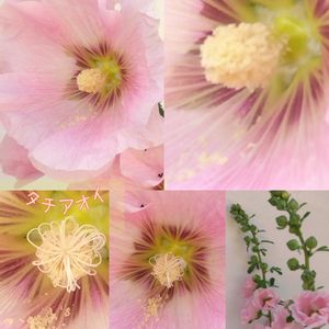 ①🩷のお花 可愛いですね。♡‿♡。✨ タチアオイ🌸 雄性先熟の花→雌しべの柱頭が伸び始める(^^♪ ②マメ科の草花🎶👀っけ~🫶*①②は近所のお寺にて♪ ③🏡寄せ植えのロータス・クリティクス?🟡開花しました~マメ科 ④ ⑤🌵マミラリア属 松霞 子株が増え🔴種子もついた まま 🟡お花咲いてます〰🤭 🏷️ピンクワールドへようこそ 🏷️火曜はマクロの発表会 🏷️けーpic祭 🏷️コラージュ仲間達 🏷️スライドショー♪