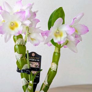 連投失礼します☺️ デンドロビウムのリセさん🌸 本来ならバルブにびっしり 咲くのかな😅 2個だけだけど 咲いてくれ嬉しい💕💕😆