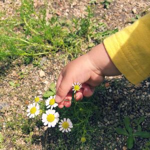 種から植えたカモミールが咲きました♪子供も香りが気に入ったみたい😊