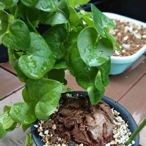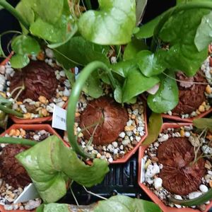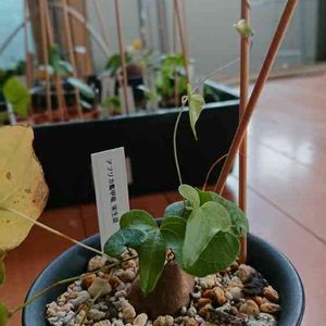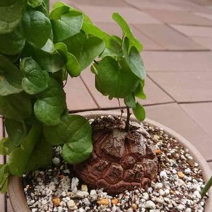 実生のアフリカ亀甲竜🍀 1年経ちました😊 今、3株残っていて そのうちの1株が1番葉っぱを伸ばしてます 芋も大きくなってます❣️