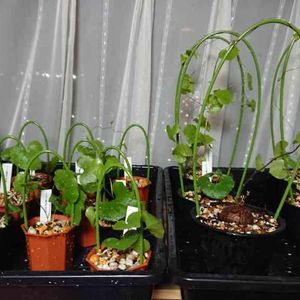 毎月3日は実生の日 8月12日蒔いたモニラリア.オブコニカ ウサミミが横に伸びてきました😆 下はアフリカ亀甲竜 小さいお芋が見えました♡ 少しづつ大きくなってきています