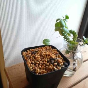 アフリカ亀甲竜実生✨ 強風で🍀が飛ばされて くりくり坊主になってしまい このまま休眠かと思っていたら… あれ?新芽が🌱 もう一つもスクスク伸びてるし?? 休眠😴しないんです?