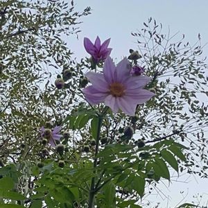 『皇帝ダリア🌸』 『せんだんの木』 どちらも大きな木 見上げると 鈴なりに実がなっている センダンの木 見事に葉っぱは落葉してます🍃 隣には皇帝ダリア🌸 🏷皇帝ダリアリレー