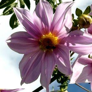 皇帝ダリア、可愛らしいピンク色〜青空にグングン伸びて、元気一杯ですね✨💗🩷💕💫