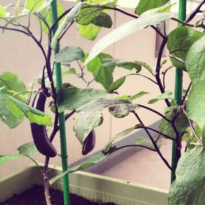 雨にも負けず。風にも負けず。🍆 梅雨が明けた頃には収穫できるといいなあ。