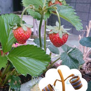 観賞用のイチゴの苗 気付いたら実がなってた😍 食べれないけど美味しそう❤️