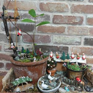 おはようございます😊 サンタ🎅が街にやって来た♪。 どんぐりの箱庭盆栽(波平さん)の街にも、サンタ🎅がやって来ました〜😊 今年の夏の暑さで、浅い盆栽鉢では枯れそうで、どんぐりの木深い鉢に植え替え。大きくなりすぎて頂芽🌱カット✂️。脇芽が無事育ってます。 苔はなかなか緑を保てません😂代わりにリメイク缶に植えたセダムを置いてみました。 (2025/12/16撮影)