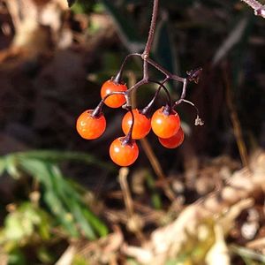 陽だまりの中、オレンジ色のヒヨドリジョウゴの実、葉はもうありません🟠🌿 ナス科 ナス属