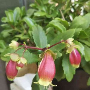 カランコエ属🪴紅提灯(ベニチョウチン)🥗 ちょっとお洒落なカランコエ属🪴 ひとつだけ、ふっくらした蕾はサーモンピンク系です💞 どんなふうに咲いてくれるのか楽しみです🎶