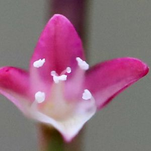 ①② ラッキョウ/辣韮 ヒガンバナ科 ネギ属 原産地:中国 チベットのヒマラヤ地方 ・球根植物 ・野菜 ・多年草 ・草丈:10-20cm ・花期:10-11月 ・花径:約 3cm ・収穫期:3-4月 別名:オオニラ、サトニラ 花言葉:「つつましいあなた」 ③ ザクロソウ/柘榴草 ザクロソウ科 ザクロソウ属 原産地:在来種 (本州、四国、九州) ・山野草 ・一年草 ・草丈:10-25cm ・花期:7-10月 ・花径:約3mm ・花被片:長さ1.5-2mm 5個、帯緑色(白緑色)楕円形~円形 ・種子:長さ約0.5mm 多数、栗褐色 腎形、光沢があり、全面に微細な低い凹凸がある ・果期:8-10月 別名:無し 花言葉:「負けず嫌い」「我慢できない」 ④⑤ コケ/苔