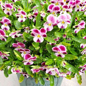 「ビオレッタ マーブルフラミンゴ」 もっりもりで可愛い~っ😍 けど、小輪系は花がら積みが大変💦花茎だけツマんだつもりでも、葉っぱも一緒にちぎってしまったり😩 お洒落な植木鉢も似合ってます💜
