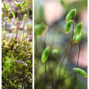 ドロップ型の苔の蒴ちゃん💧 ホソウリゴケ…かな❓️ ハリガネゴケって、たねちゃんさんに教えてもらいました(*´∀`*)アリガトーゴザイマス💕 ぁ~、小さくなって、この蒴をハグしたい(๓´˘`๓)♡