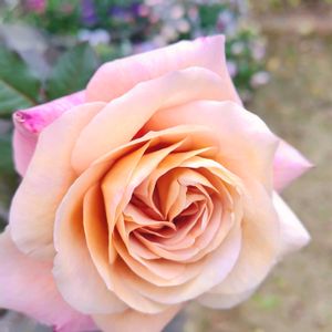 四季咲き大輪バラ ガーデン オブ ローゼズ冬バラの花 夜明け前の暗い中で、今年最後の花を咲かせています いつも杏色の素敵な花びらに、癒されてきました🧡