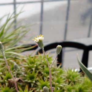 曇天の空の下、開花してました😊 セネシオ属って感じのお花。白寿楽はグリネ等と違い上に伸びるタイプ。種小名はsitorifolmisのようだけど意味は小麦粉…?白い粉ってことかなあ🤩