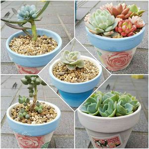 こんにちは。 今日は、曇り空の中のんびり多肉事ー😘 昨日、ダイソー鉢にダイソー品で塗り塗り セリア、コラージュグッズでペタペタ うーん、、近づけばアラが見えるけど、ま、、いっか😖 真ん中の青い鉢は、絵を手で絵を書き出したら断念して、グラデーションっぽくごまかした🤣