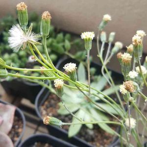 白寿楽さんの蕾にたんぽぽがついてる💦と思ったら白寿楽さんの綿毛だった🌸 さすがキク科同士!