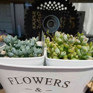 名前を忘れてしまった多肉ちゃん ネックレス系似た花が次々と咲いてます🎵 「白寿楽」 名前教えてもらいました🎶