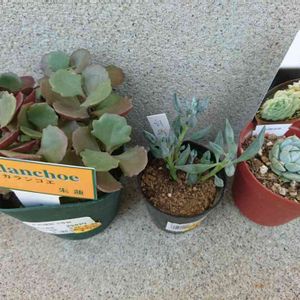 近くのHCを2軒、はしごしました。 左の2つは100円😁 そして葉挿し用の葉っぱをフリマで3回購入し、全て枯らした静夜さんとご対面!! 買うしかないよね😆