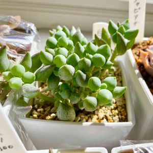 多肉植物 白寿楽 なんだか形も肉々しさも可愛くて最近お迎えしました😊セネシオ属。グリーンネックレスさんとかと同じ種ですかね。 寒さ暑さに弱いようなので現在は室内組です。増えたら可愛いだろうな💕