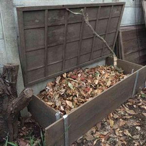 腐葉土作る、BOXつくりました。建築リサイル廃材屋さんで、いろんな板を購入しつくりました。天板は、木の雨戸を再利用しました。
