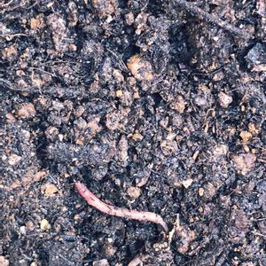 手作り培養土。かき混ぜてぬかを追加しようとしたら、なんとミミズが! どんどん分解してくれたまえ〜♫
