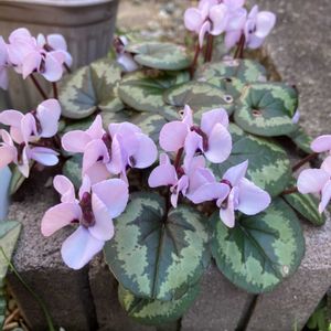 原種シクラメン📝 *ミラビレ *グラエカム プラスチック鉢 →陶器鉢に植え替えました①〜③ *コウム ロクベンシモツケとの寄植え鉢 →花壇に植え替えました *コウム 花壇植え →少しづつ開花💗④ *ヘデリフォリウム 花壇植え →葉っぱっぱ🌿🌿 *インタミナタム スモークツリー(鉢植え)の足元植え →葉っぱっぱ🌿🌿