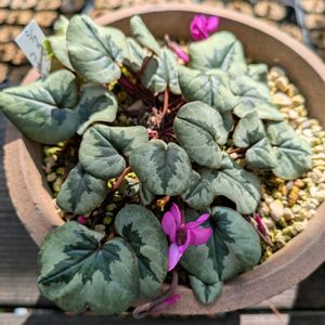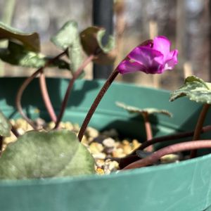 クリスマスローズ展で買った大木ナーセリーさんのシクラメン・コウムの濃いピンクな個体です シクラメン買うのは初めて!