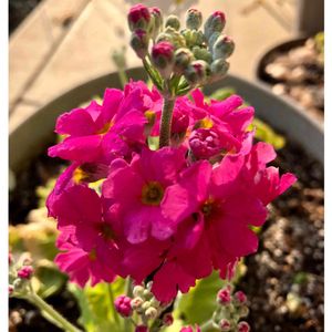 2月18日 数少ない鉢植えの赤い花 プリムラ マラコイデス🌺 少ないから鉢の土が目立ちすぎ😅