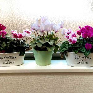 花色はチョコレート。 葉もダークグリーン。 そんなシックなシクラメンには黒いスクエアを合わせて大人の雰囲気に。