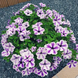 CAINZ×PWとのコラボ商品 あふれ咲きペチュニア🌼ブルーベリージャム😌 いい感じに仕上がったので投稿します!高温障害?なのか、稀に紫💜のみのが咲くようになりました🥺これもまた良きですね(笑)