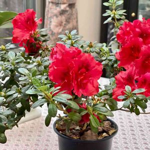 見切り品を購入して、1年掛けて仕立たアザレア。販売株の様に一斉には咲かないけど、大事な1鉢。